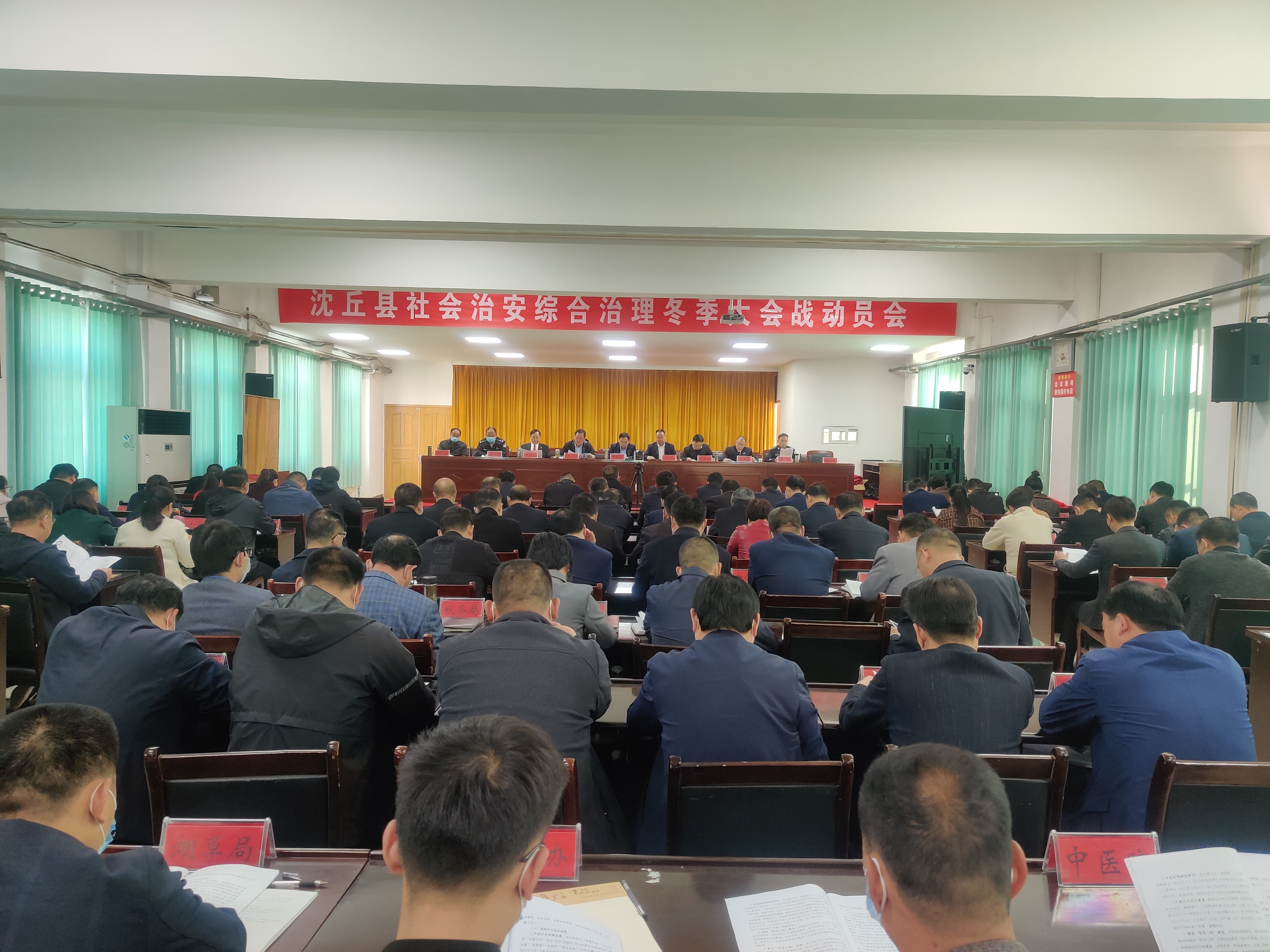 11月4日,沈丘縣組織召開社會治安綜合治理冬季大會戰(zhàn)動員會??h領(lǐng)導(dǎo)賈慶偉、段然、張銳、鹿槐生、趙振勇、李世龍、李恒新、張彥、李廣其出席會議??h直各單位及各鄉(xiāng)鎮(zhèn)(辦)主要負(fù)責(zé)人參加會議。會上,副縣長張銳宣讀了《沈丘社會治安綜合治理大會戰(zhàn)工作方案》。