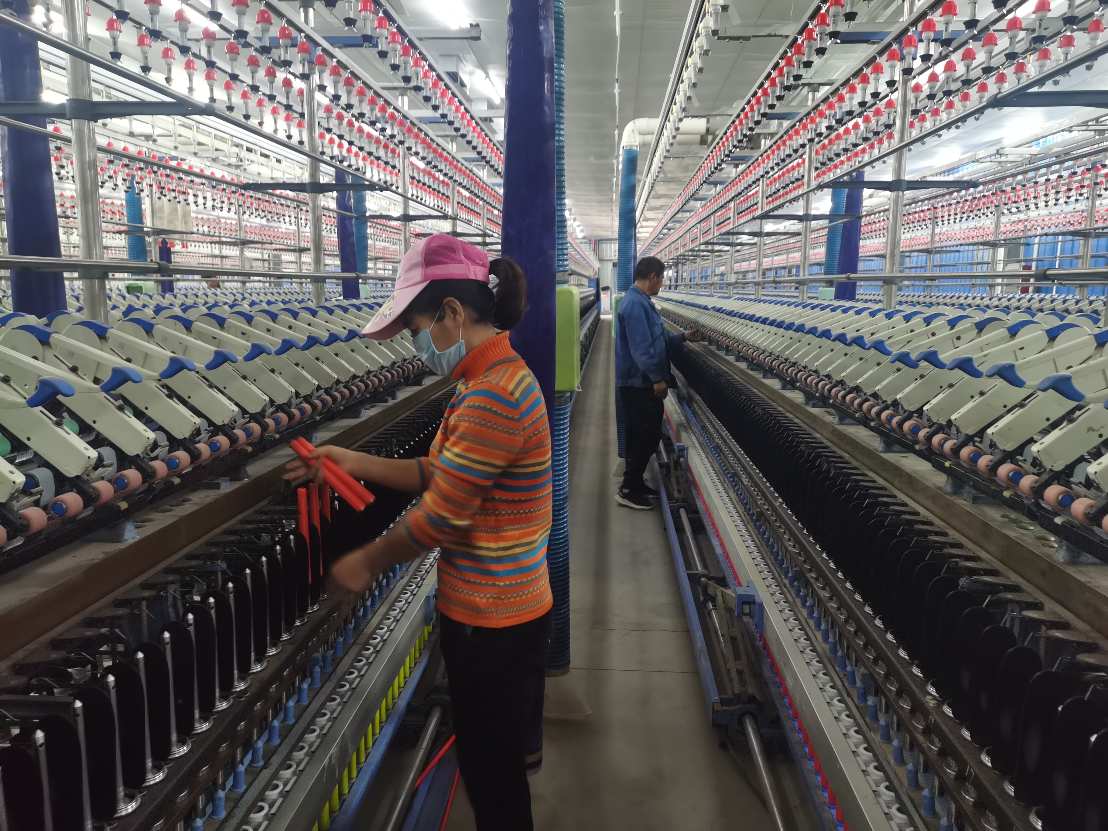 11月9日,扶溝縣博發(fā)紡織有限公司一期2萬(wàn)紗錠生產(chǎn)線進(jìn)口設(shè)備安裝完畢,正在試車。