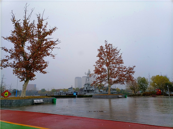 昨天剛過完小雪節(jié)氣,今天就下了一場(chǎng)雪。這場(chǎng)雪像是如期而至的約定,又似突如其來的驚喜,妝扮了整個(gè)城市。飛揚(yáng)的雪花落到地上,草葉上,枝頭上,瞬間融化成晶瑩的水珠,滋潤著大地和萬物,形成了秋與冬交接的獨(dú)特景色。