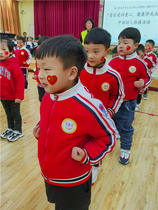 在熱情洋溢的音樂中,中班的運(yùn)動(dòng)健兒們,雄赳赳氣昂昂地入場(chǎng)了。瞧!他們個(gè)個(gè)精神抖擻,活力四射,整齊的步伐,響亮的口號(hào),無(wú)不體現(xiàn)蓮幼兒童的活潑、自信。“世界真美好”的體操音樂響起,幼兒快樂地舞動(dòng)身體,時(shí)而裝作勇敢的海鷗,時(shí)而扮作講衛(wèi)生的小花貓,時(shí)而又成了互幫互助的企鵝。活靈活現(xiàn)的動(dòng)物模仿操,迎來(lái)現(xiàn)場(chǎng)觀眾的熱烈掌聲。隨著一聲響亮的“嘿、哈”,幼兒扎馬步、出拳,一氣呵成。小小的身體,展現(xiàn)大大的能量。掌握中國(guó)功夫,鍛煉強(qiáng)健體魄,我們都是功夫?qū)殞?!瞧!大班幼兒在?dòng)感的音樂和老師的指揮中精神抖擻、踏著整齊的步伐入場(chǎng)了,他們靈活、有序地變換著各種隊(duì)形,像一個(gè)個(gè)快樂的小精靈。在歡快的音樂中,幼兒都十分投入,和著音樂的節(jié)奏,動(dòng)作協(xié)調(diào)、整齊有力,時(shí)而還發(fā)出“哼哈”的口令聲呢!他們開心地跳著、笑著,跳出了快樂、跳出了自信、跳出了他們對(duì)運(yùn)動(dòng)的喜愛,對(duì)健康的追求。