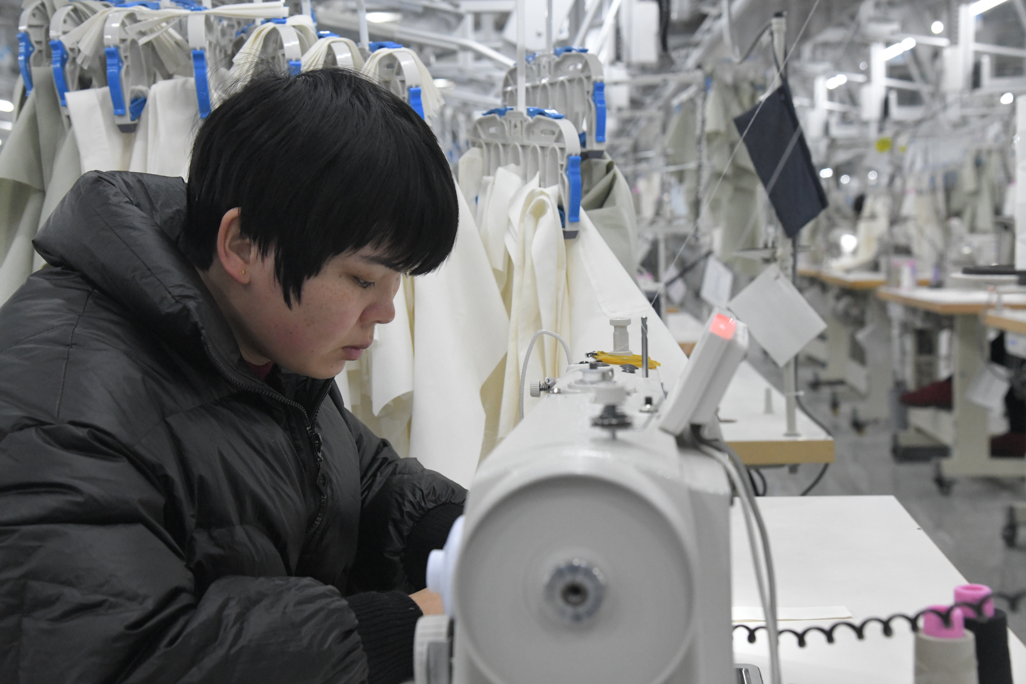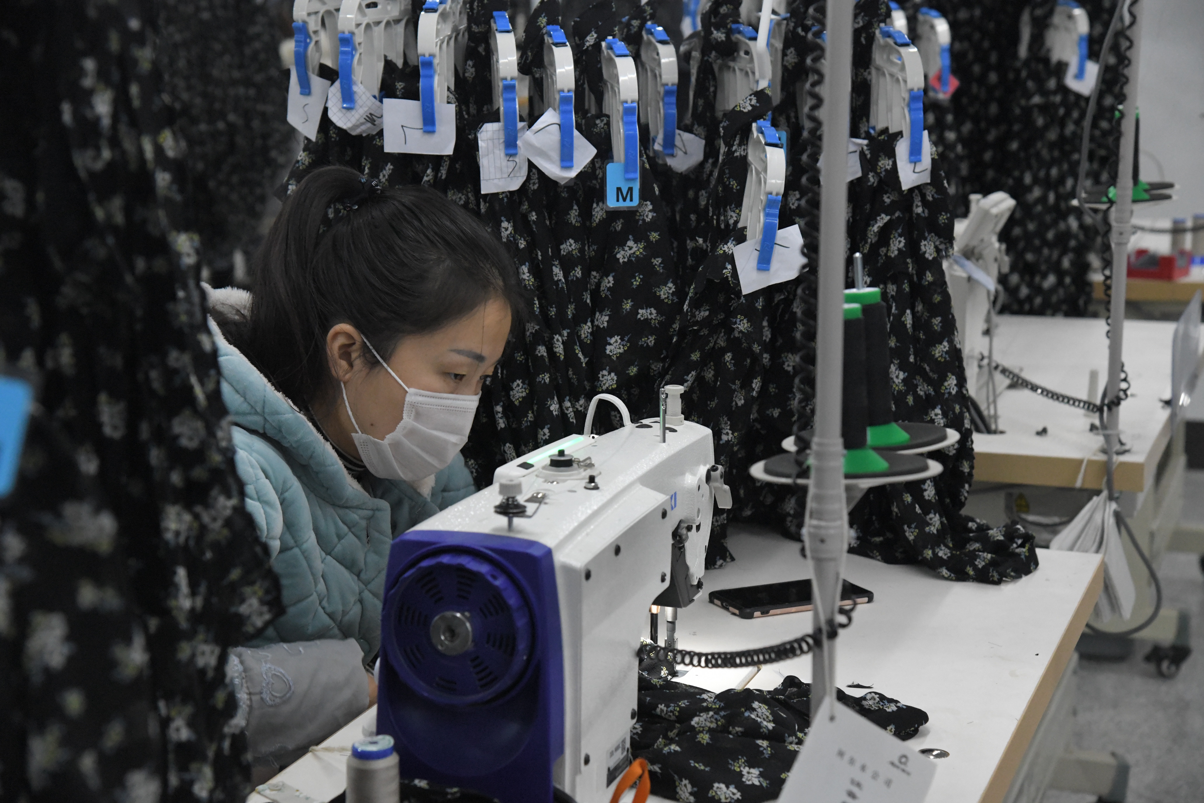 12月17日,在商水縣產(chǎn)業(yè)集聚區(qū)雅戈爾盛泰紡織工業(yè)園一現(xiàn)代化車間內(nèi),紡織女工正在制作外貿(mào)訂單服裝。雅戈爾盛泰紡織工業(yè)園是周口市重點招商引資企業(yè),總投資48億元,占地2000畝,是集棉紡、面料、印染、成衣、進(jìn)出口貿(mào)易、跨國經(jīng)營于一體的大型綜合生產(chǎn)基地,長期代加工雅戈爾、PVH等國際品牌。該項目一期已經(jīng)投產(chǎn),全部建成后將填補我市紡織服裝行業(yè)缺少高端品牌的空白,促進(jìn)我市輕紡工業(yè)的發(fā)展。