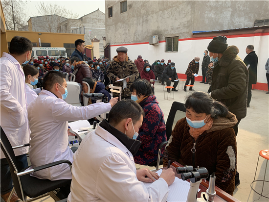 為民服務(wù)暖人心,送醫(yī)下鄉(xiāng)助健康。12月18日上午,淮陽區(qū)齊老鄉(xiāng)柳南行政村迎來一批特殊的客人。市眼科醫(yī)院醫(yī)療隊為村里的百位老年人進行體檢及眼疾檢查。同時,該村6名村醫(yī)與眼科醫(yī)院專家建立交流和跟班學習制度,以便更好為村民服務(wù)。