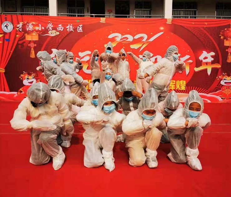 在該縣才源小學(xué)西校區(qū),三年級三班、四班、六班、八班合作編排了《與時間賽跑》情景劇,充分展示了在抗擊疫情期間,醫(yī)護人員奮勇當先的責(zé)任擔(dān)當,逆行出征的義無反顧,風(fēng)雨兼程的無私奉獻。舞臺上,孩子們的精彩表演,獲得了陣陣掌聲。