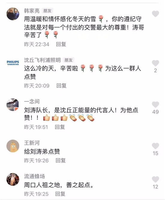 2021年元旦,記者聯(lián)系聯(lián)系上了視頻中的主人公——沈丘縣交警大隊城市中隊劉濤中隊長,雖然是元旦假日,他依然堅守在崗位上,他告訴記者,這是一名交警工作的日常,沒有想到自己和同事們的一個小舉動能獲得無數(shù)網友好評,這給了他們在以后工作中更大的動力,劉濤表示,風雪無阻,滾滾車流中,他將為全縣人民的安全出行繼續(xù)堅守崗位。