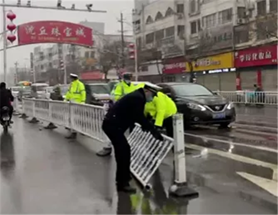 走在路上,雪花片子就往臉上撲,迎面的小風像刀子一樣,即使你不愿意,也要跟你進行親密接觸。到沈丘縣回民小學東邊的十字路口,各路送娃大軍從四面八方涌來,那真是車來車往,熙熙攘攘。兩輪的三輪的四輪的,瞬間一起往學校門口涌去。原本送完娃多少都會堵一會,今天竟然沒有堵車!后來才知道學校這邊有個警察很早就來現(xiàn)場指揮交通。