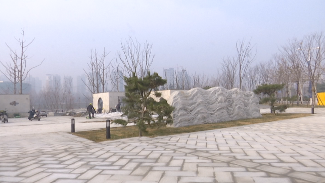 1月4日上午,記者在現(xiàn)場看到,映入眼簾的是一塊巨大的景觀石,造型如山峰,氣勢巍峨,左右兩側(cè)擺放黑松,使得整個游園風格簡潔,自然爽朗,歷史元素厚重,在功能布局上,還配建了健身小廣場、休憩廊架等,提升了游園的綜合服務功能,成為周邊市民游玩鍛煉的好去處。