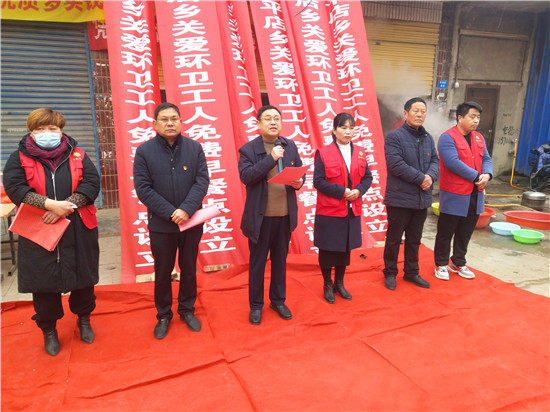 平店鄉(xiāng)市場環(huán)衛(wèi)工喝上免費粥