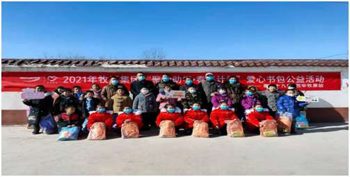 在官莊村“愛心基金會(huì)”奉獻(xiàn)愛心的同時(shí),當(dāng)日下午, “牧原集團(tuán)”和鐵爐村愛心人士在鐵爐村發(fā)起愛心捐贈(zèng)活動(dòng),向158名小學(xué)生贈(zèng)送了書包和文具盒。