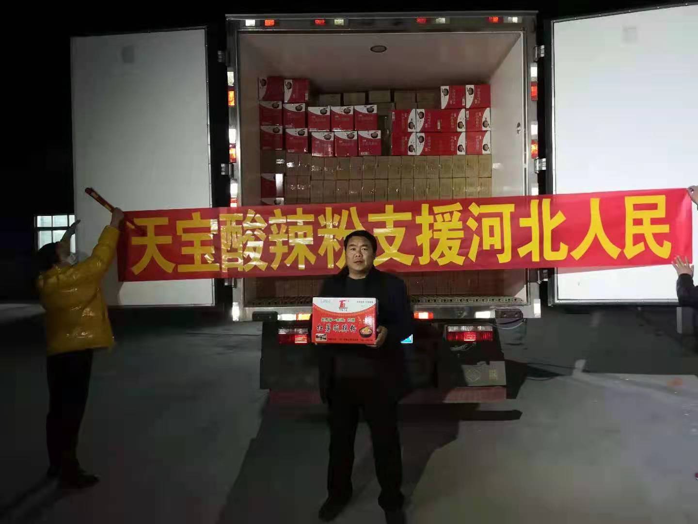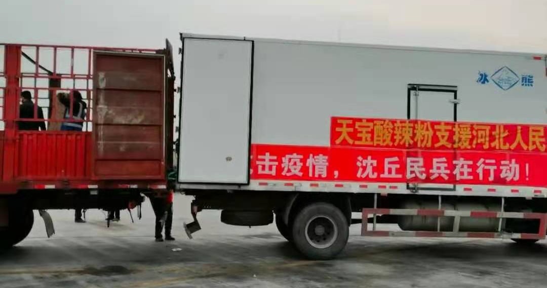 于是,他當即與河北省南宮市相關防疫部門取得聯(lián)系,天宮那邊欣然接受,并表示感謝。1月20日當夜,便組織召集村上的“鐵桿工人”連夜加班加點生產(chǎn)了價值5萬元共計1萬盒“天寶酸辣粉”,無償捐贈給河北天宮市,送去來自沈丘縣中豫天寶食品有限公司的一片愛心。