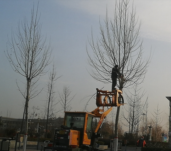 1月29日,在市城鄉(xiāng)一體化示范區(qū)政通路上,有工作人員正在修剪樹木。工作人員說,修剪樹木的最佳時期是冬季,一是樹上沒有葉子,這樣可以更輕松地查看樹的結構;二是冬季樹木正在休眠,在睡眠狀態(tài)下,樹木受到修剪的沖擊較小。圖為工作人員正在修剪路邊的行道樹。(周口日報·周道客戶端記者 馬月紅攝)