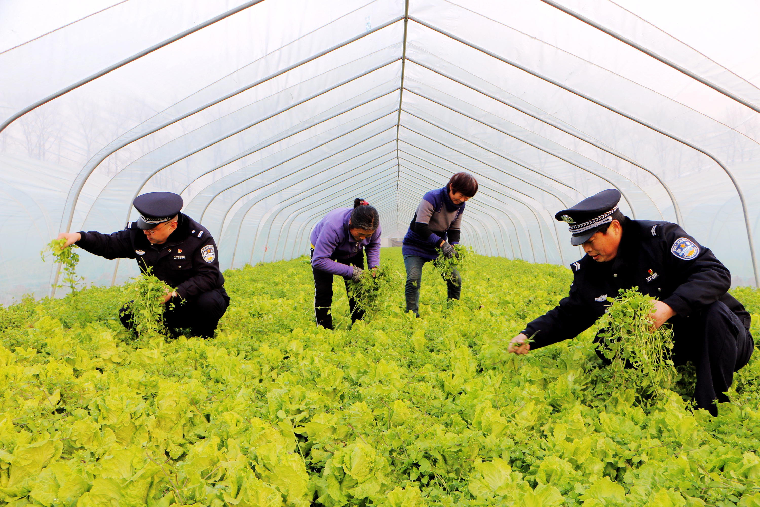 2月1日,商水縣公安局平店派出所民警到該鄉(xiāng)蔬菜種植園了解貧困戶經(jīng)濟(jì)收入情況,積極為貧困戶出點子、想辦法,爭取讓貧困戶早日脫貧。圖為民警在幫助貧困戶拔草。