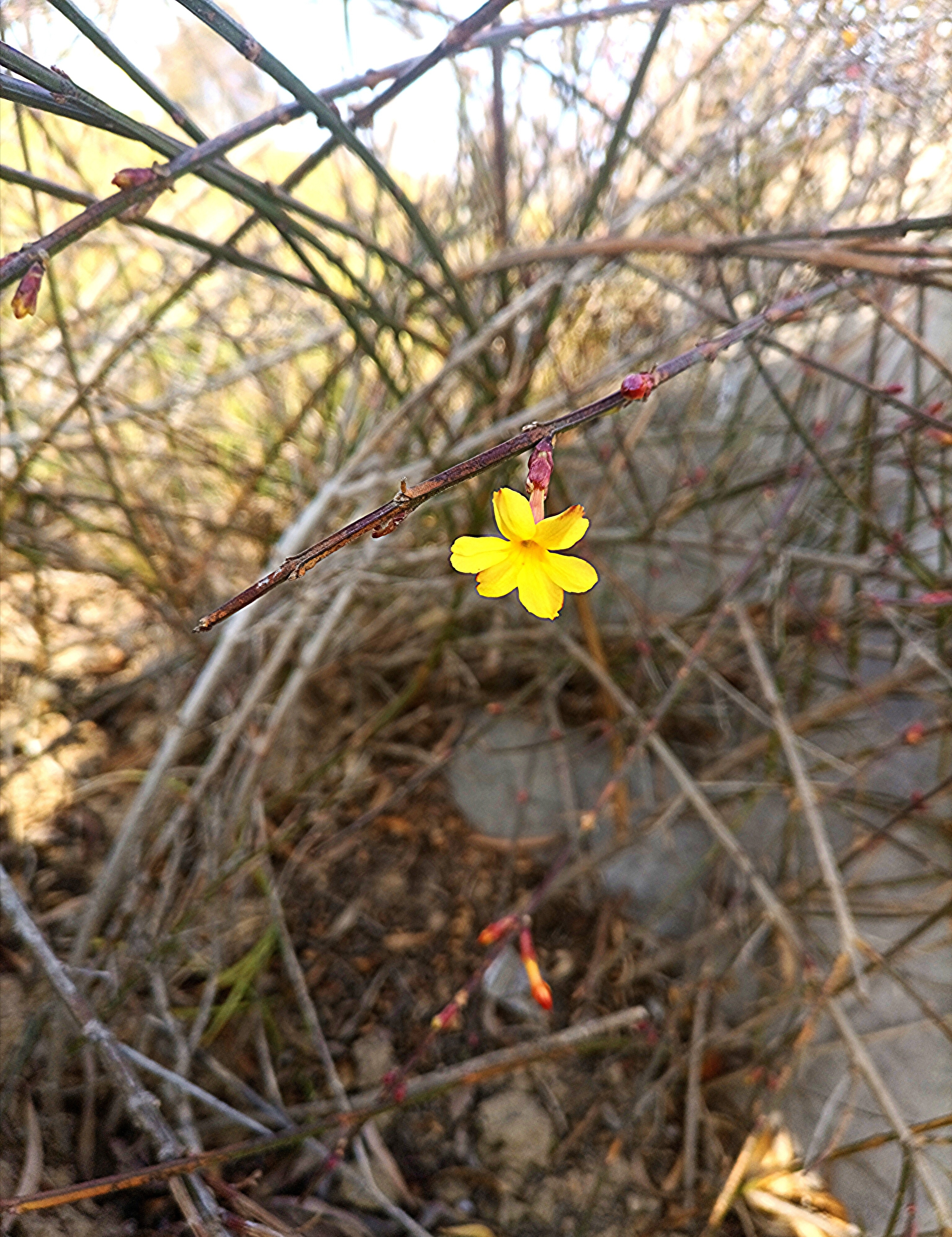 2月3日,是立春時(shí)節(jié)。接連幾日,我市天氣晴朗,氣溫漸暖,周口公園的迎春花枝條已經(jīng)掛滿了花蕾,偶有幾朵“性急”的花兒已經(jīng)綻放,迫不及待地迎接春天的到來,嫩黃的花瓣在陽光的照射下,閃耀出金子般的光芒,令人見之心喜。