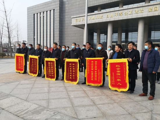 2月4日下午,淮陽(yáng)區(qū)康森木業(yè)有限公司、周口裕彩科技研發(fā)有限公司等6家企業(yè)代表為區(qū)優(yōu)化營(yíng)商環(huán)境專(zhuān)項(xiàng)治理工作組送來(lái)了6面錦旗和大量防疫物資,向工作組表達(dá)感激之情,對(duì)工作組人員高效快捷的工作給予高度贊揚(yáng)。