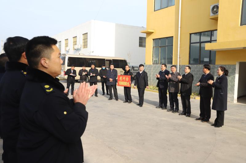 2月10日,周口港區(qū)黨委、管委會慰問民警、輔警、消防隊員、城管隊員,向長期奮戰(zhàn)在一線的工作人員以及他們的家屬致以節(jié)日的問候和祝福。港區(qū)領導孫鵬、程若光、杜廣賢、張東立、李翔、李素芹參加慰問。