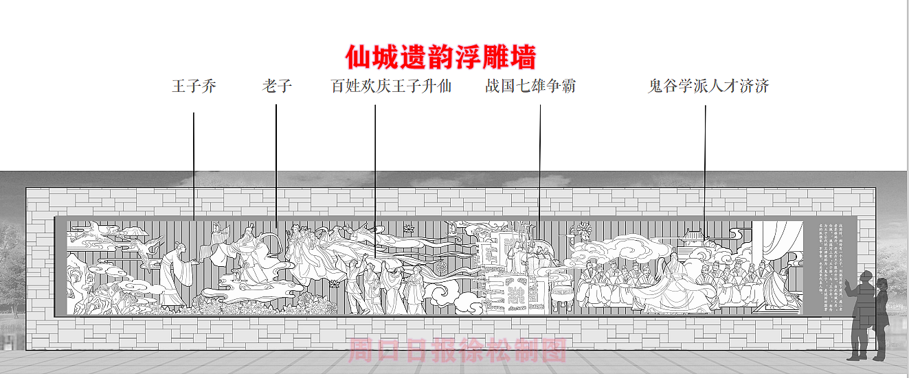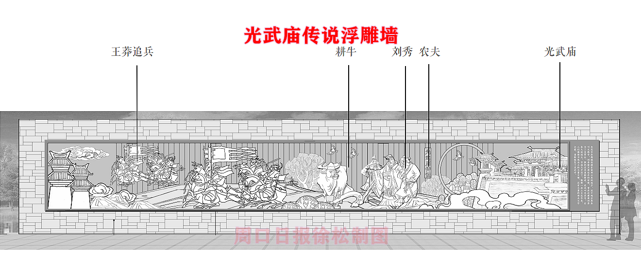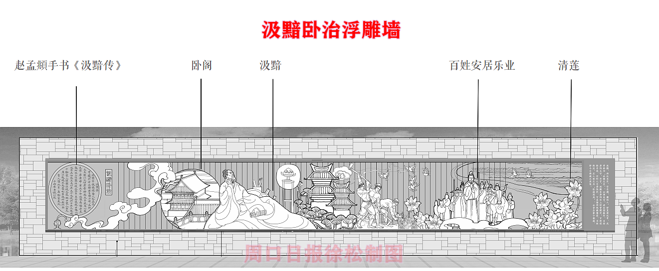 在縣委、縣政府綜合大樓東側(cè)的核心形象段,配合鄲城行政中心打造莊嚴(yán)、大氣氛圍的同時(shí),對(duì)鄲城歷史文化進(jìn)行了集中展示,包括鄲城的歷史沿革,鄲城的發(fā)展理念,歷史故事等。其中調(diào)水渠西側(cè)以現(xiàn)有人民廣場(chǎng)對(duì)應(yīng)的綠地為基礎(chǔ),設(shè)置了較多的歷史文化節(jié)點(diǎn)。如調(diào)水渠新華路橋頭北側(cè)的廉政文化廣場(chǎng),講述了漢朝名臣汲黯的故事。汲黯為人耿直,直諫廷諍,親政愛民,敢于承擔(dān)責(zé)任,漢武帝劉徹稱其為“社稷之臣”。汲黯廉政廣場(chǎng)建設(shè)在此處更有著深遠(yuǎn)的意義,它一方面提醒老百姓要了解歷史、敬畏先賢,同時(shí)也激勵(lì)著鄲城縣的各級(jí)黨員干部要在習(xí)近平新時(shí)代中國(guó)特色社會(huì)主義思想引領(lǐng)下,“不忘初心、牢記使命、廉潔奉公、一心為民”。
