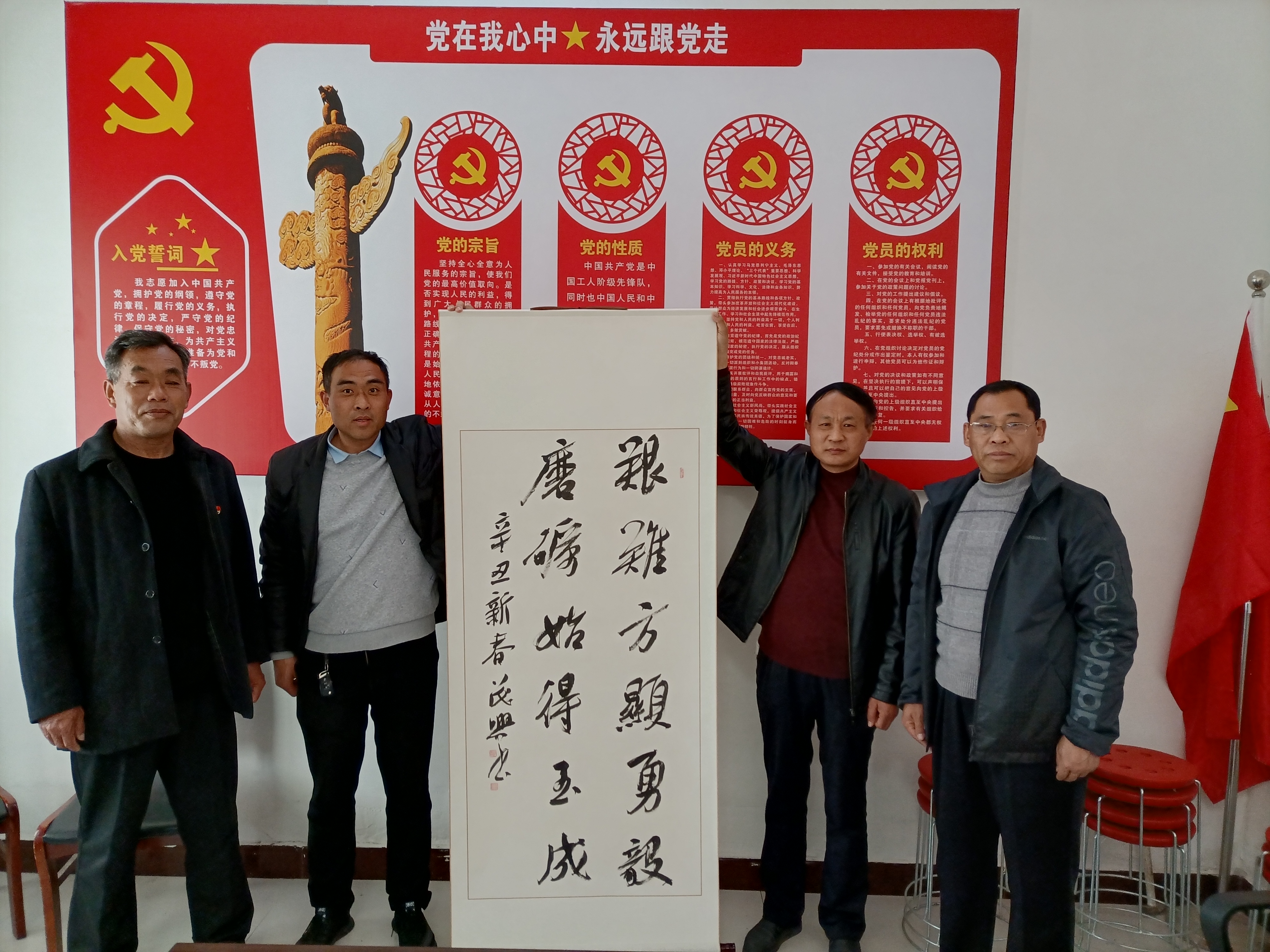 參與活動(dòng)的書(shū)法家們都來(lái)自于太康縣中書(shū)協(xié)和省書(shū)協(xié)會(huì)員,書(shū)寫(xiě)內(nèi)容全部來(lái)自于習(xí)近平總書(shū)記的經(jīng)典講話(huà),裝裱之后送到全縣榮獲省、市、縣先進(jìn)黨支部的行政村,內(nèi)容突出新時(shí)代的“新”,涉及“永遠(yuǎn)跟黨走”,成為宣傳黨建知識(shí)的新載體、教育群眾干部的新陣地。