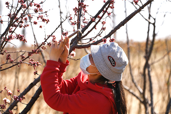 花樹吸引女孩拍照