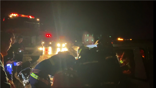 2月21日19時許,大廣高速周口段2064KM附近發(fā)生一起交通事故,大貨車沖破護欄與對向車道內(nèi)的兩輛私家車發(fā)生碰撞,司機和一名5歲女童被困車中。接到報警后,民警、消防、醫(yī)護人員迅速趕到現(xiàn)場開展救援,20時39分兩人被救出并接受進一步治療。