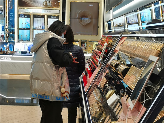 “精致的生活需要儀式感,把自己打扮得漂漂亮亮的,是對自己的關(guān)愛?!痹谝簧虉龅幕瘖y品專柜前,一對正在選購化妝品的母女說。