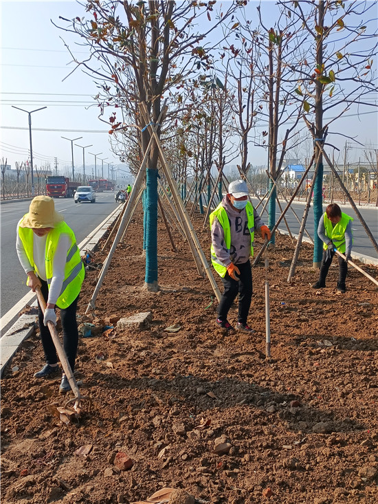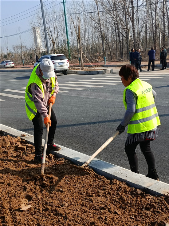 中州大道太清路至周口野生動(dòng)物世界段主體工程基本完工,目前正在進(jìn)行輔助工程的施工。圖為3月4日,幾名工人正在進(jìn)行車道隔離帶和邊道景觀帶的平整綠化。③6