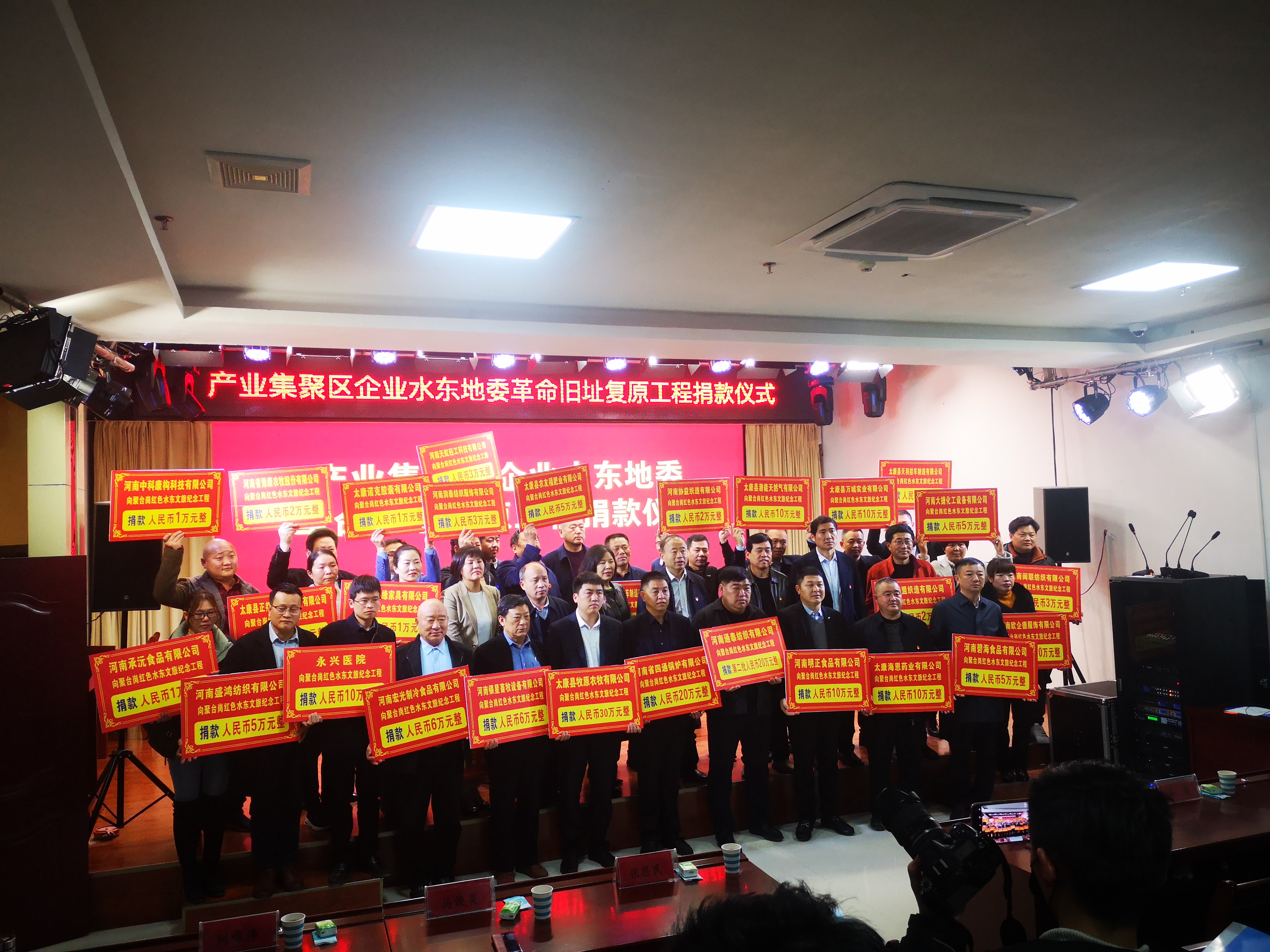 捐款現(xiàn)場,太康牧原農(nóng)牧有限公司、河南通泰紡織有限公司、河南省四通鍋爐有限公司、河南省龍?jiān)醇垬I(yè)股份有限公司等35家企業(yè)進(jìn)行了現(xiàn)場認(rèn)捐。