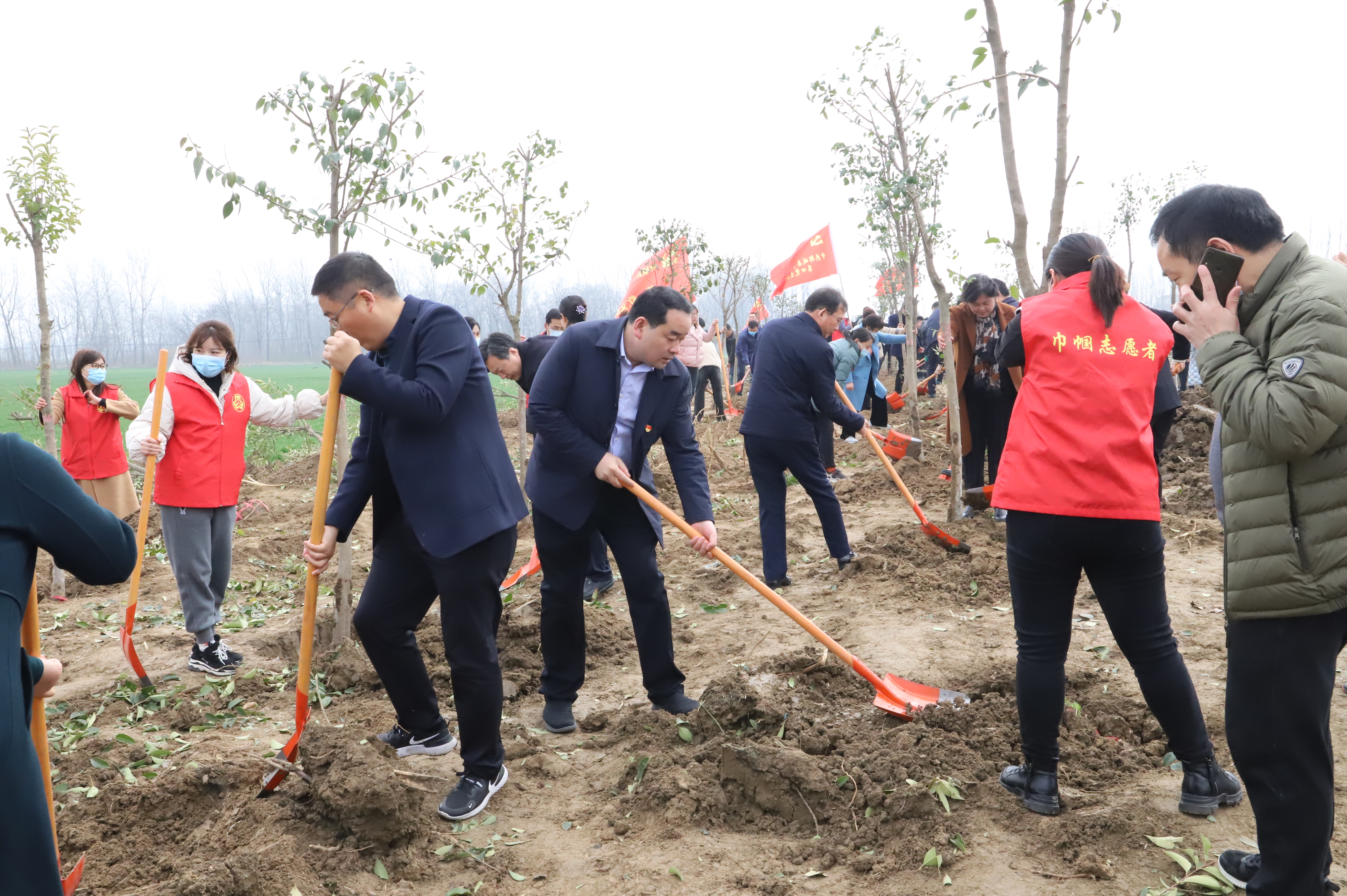 草長(zhǎng)鶯飛,春回大地。3月12日,在第43個(gè)植樹節(jié)之際,全市掀起義務(wù)植樹熱潮,黨員干部、志愿者、市民踴躍參與義務(wù)植樹活動(dòng)。扶正樹苗、揮鍬培土、分層踩實(shí)、堆起圍堰、提水澆灌,認(rèn)真地完成著每一道工序,栽下了一棵棵樹苗,為改善生態(tài)環(huán)境、綠化美麗家園種下了一棵棵綠色的希望。圖為鄲城縣義務(wù)植樹現(xiàn)場(chǎng)。