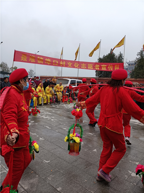 二月二,龍?zhí)ь^。3月14日,西華縣女媧城門前的廣場上,寫著“聶堆鎮(zhèn)埠口村文化志愿者宣傳隊(duì)”的紅色條幅前吸引了眾多游人。這些志愿者們用群眾喜聞樂見的舞獅、戲曲等傳統(tǒng)文藝節(jié)目,自編自演脫貧攻堅(jiān)給村民們帶來的新變化,宣傳黨的富民政策,鼓勵大家參與到鄉(xiāng)村振興工作中。