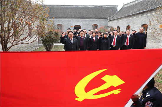 戰(zhàn)爭的硝煙早已散去,烈士的英名與浩然正氣長存。在吉鴻昌將軍的塑像前,朱仲文領(lǐng)誓,全體干警面對鮮紅的黨旗莊嚴(yán)宣誓,重溫入黨誓詞。