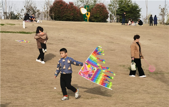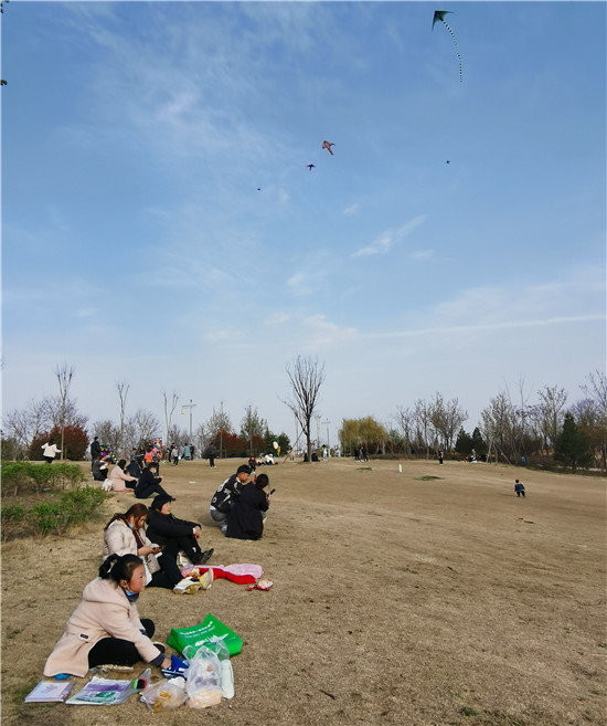 3月21日,在沙潁河南岸,明媚的春光下,不少市民攜帶家人在草坪上或放飛箏、或賞花拍照、或休閑玩耍,孩子們嬉戲奔跑著,到處是歡聲笑語。