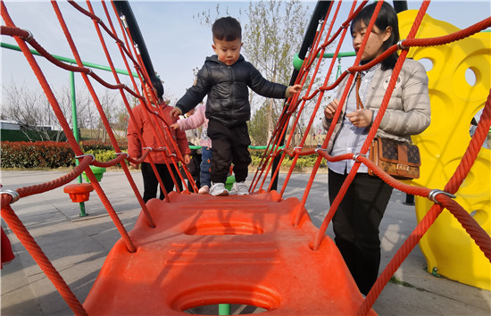 在周口公園內(nèi),園內(nèi)春意盎然,一株株垂柳隨風(fēng)搖擺,各種花開正盛,市民循著春天的腳步,品味草長鶯飛的春色美景。游樂設(shè)施區(qū)內(nèi)孩子們盡情地玩耍,臉上洋溢著開心地笑容。