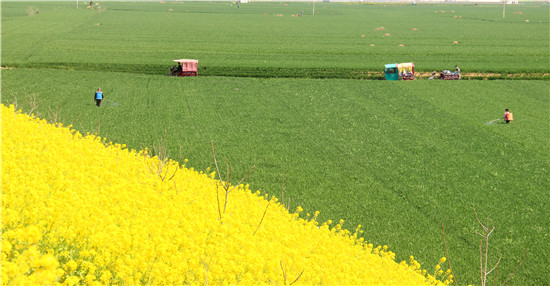 3月24日,河南省商水縣郝崗鎮(zhèn)北社村村民在管理麥田。春分到來,天氣變暖,鮮花盛開,素有“豫東糧倉”之稱的商水縣進入春耕備耕忙碌時節(jié),村民紛紛走向田野,伴著花香開展春季農業(yè)生產,田間地頭一片熱火朝天的繁忙景象。②7