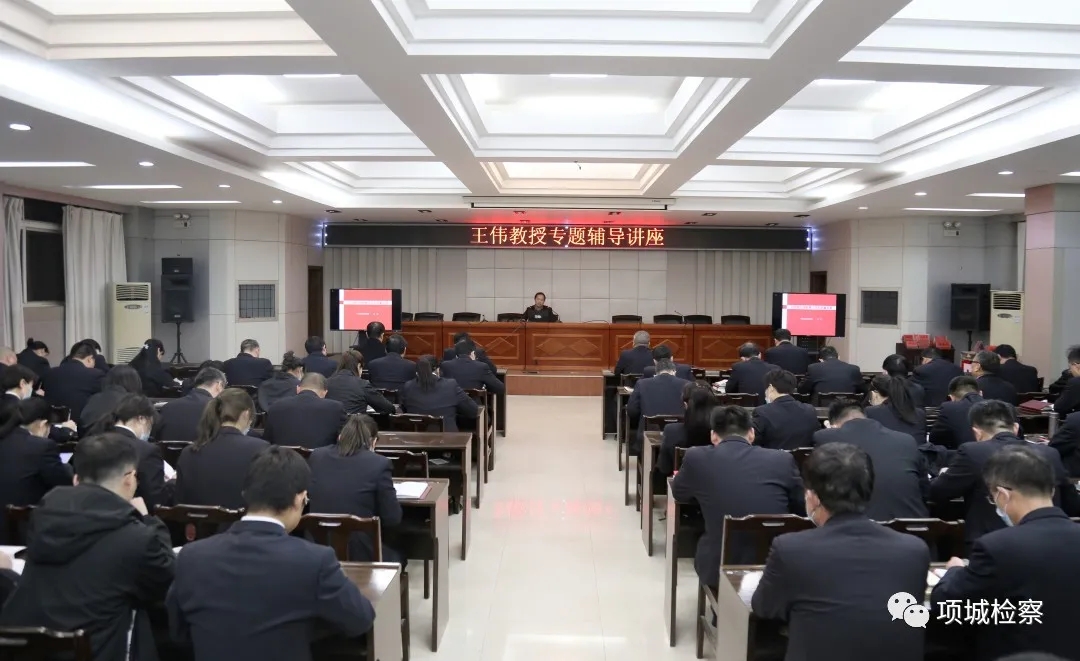 為推動(dòng)檢察隊(duì)伍教育整頓學(xué)習(xí)教育環(huán)節(jié)往深里走、往實(shí)里去,3月22日晚,項(xiàng)城市檢察院邀請(qǐng)周口市委黨校副教授王偉到“檢察夜?!睘楦删M(jìn)行黨建知識(shí)專題講座,夯實(shí)政治教育根基,提升干警思想政治素質(zhì)。王偉以《以黨建引領(lǐng)檢察工作高質(zhì)量發(fā)展》為題,從“背景闡釋:深刻認(rèn)識(shí)黨建時(shí)代內(nèi)涵”、“歷史演進(jìn):準(zhǔn)確把握基層組織作用”“路徑拓展:科學(xué)理解基層黨建手段”、“強(qiáng)發(fā)展、協(xié)調(diào)發(fā)展、高質(zhì)量發(fā)展。 王偉邊講解邊播放ppt課件。其報(bào)告主題鮮明、邏輯清晰,內(nèi)容豐富、語(yǔ)言生動(dòng),旁征博引、貫古通今,深入淺出、通俗易懂,讓干警美美享受一堂黨建教育“大餐”。