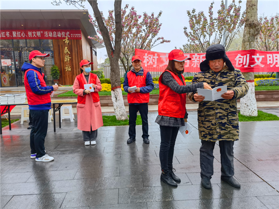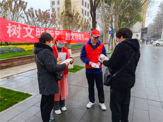 在活動現(xiàn)場,城管志愿者頭戴小紅帽,身穿紅馬甲,向過往群眾發(fā)放講解《周口市文明行為促進條例》,耐心解答市民提出的問題,以實際行動倡導文明、傳播文明,展現(xiàn)城管志愿者的積極風采和良好的精神風貌。②10