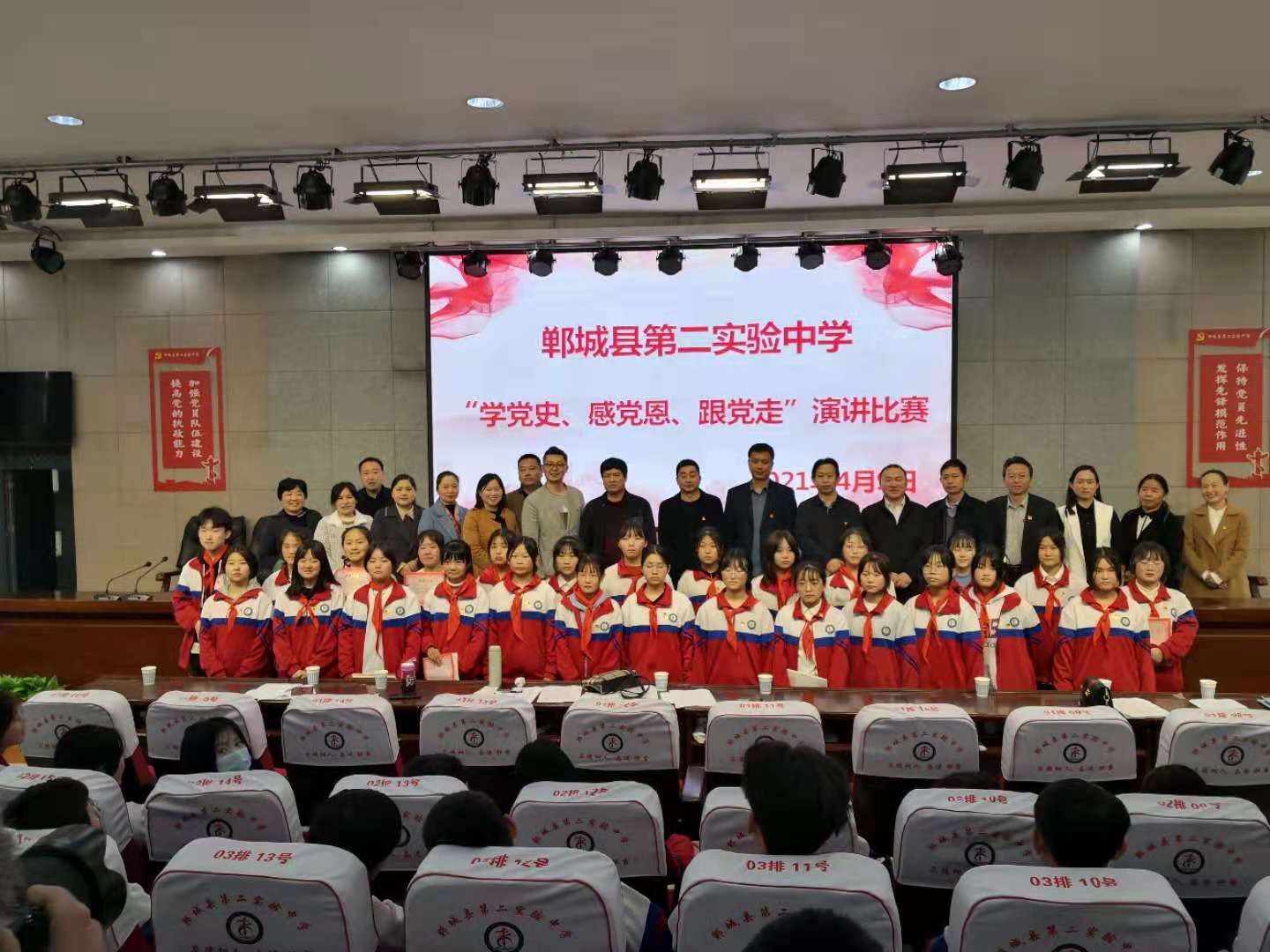 4月9日上午,鄲城縣第二實(shí)驗(yàn)中學(xué)舉行“學(xué)黨史感黨恩跟黨走”主題演講比賽。