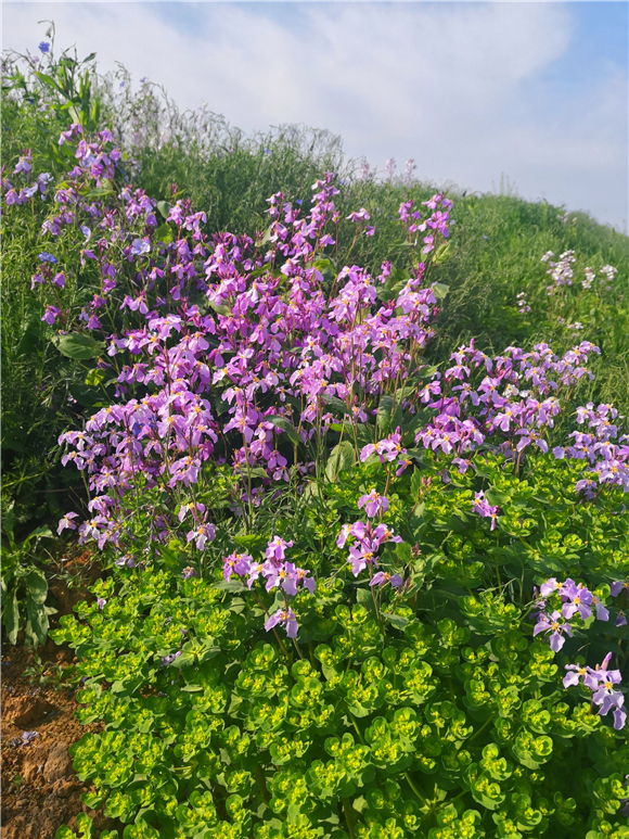 據(jù)了解,諸葛菜也叫二月蘭,因早春農(nóng)歷二月前后開花,所以叫二月蘭,花開溫柔,娟秀,清雅,很是招人喜歡。而且具有較強(qiáng)的耐寒性與適應(yīng)性,自繁能力比較強(qiáng),一次播種能年年自成群落,能夠有效控制裸地?fù)P塵起沙、抑制雜草生長。諸葛菜花花期相當(dāng)長,能夠從早春時(shí)節(jié),一直開到暮春初夏間,當(dāng)百花盛開時(shí),它依然露著笑臉。因此著實(shí)是春天里的“早到遲退”之花。③5
