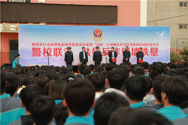 4月18日上午,鄲城縣打擊治理電信網(wǎng)絡(luò)新型違法犯罪“迅雷”行動(dòng)暨反詐宣傳進(jìn)校園活動(dòng)儀式在縣三高啟動(dòng)??h政府副縣長、公安局長陳鳳祥,縣政府辦公室主任賈培民,縣教體局黨組書記、局長羅明黨等出席啟動(dòng)儀式,縣打擊治理電信網(wǎng)絡(luò)新型違法犯罪工作各成員單位、縣公安局、縣三高分別組成代表隊(duì)2200余人參加啟動(dòng)儀式,儀式由賈培民主持。