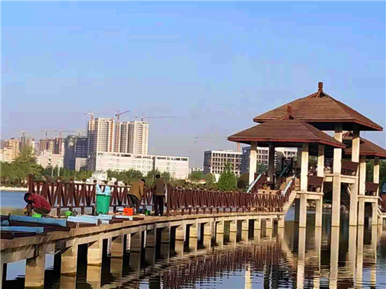 近日,位于文昌大道的周口公園啟動(dòng)了對(duì)水上棧道的維修。周口公園的水上棧道和亭榭是一道美麗的風(fēng)景,成為人們游園打卡之地,然而因建造時(shí)用的是木材,歷經(jīng)風(fēng)雨,朽壞嚴(yán)重,存在安全隱患,周口公園方面于去年將之封閉。記者在現(xiàn)場(chǎng)看到,工人已經(jīng)將木質(zhì)扶欄、道上木板拆除,正在安裝鐵護(hù)欄。鐵護(hù)欄油漆成棕褐色,依然保持原棧道的風(fēng)格和色調(diào)。②7