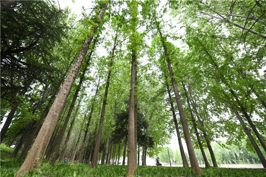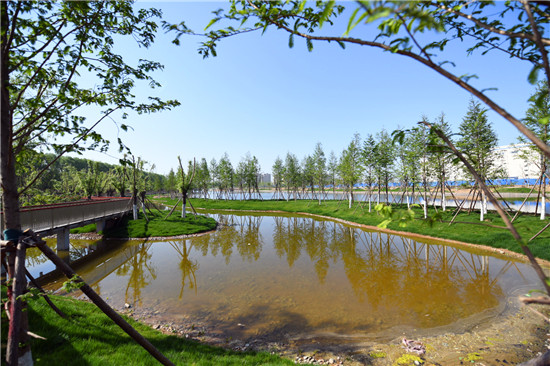 與城區(qū)的各個(gè)游園相比,此處稍顯僻靜,翠陰蒙密,再加上流水淙淙,更有風(fēng)物清幽之感。閑暇之時(shí),三三兩兩的居民結(jié)伴散步,大自然的靜謐與靈動(dòng)在這里相交相融,讓人心曠神怡。