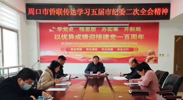 2月16日,周口市僑聯(lián)召開黨組(擴(kuò)大)會(huì)議,傳達(dá)學(xué)習(xí)市委五屆二次全會(huì)暨市委經(jīng)濟(jì)工作會(huì)議精神,市僑聯(lián)黨組書記、主席馮連根主持會(huì)議。