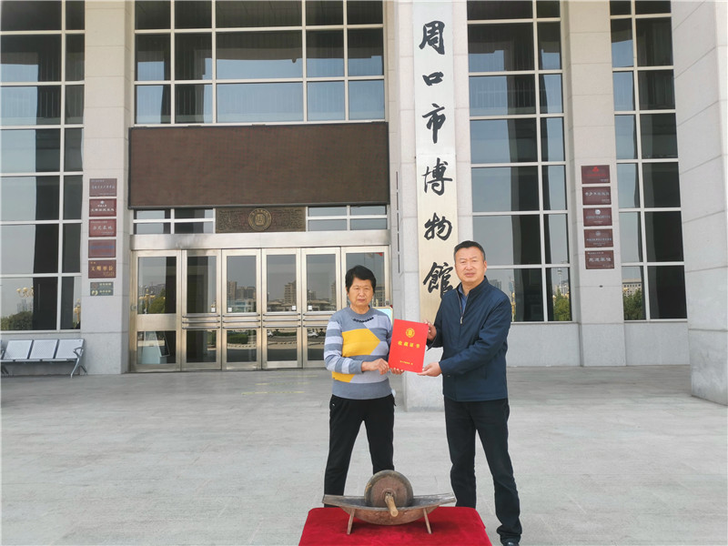 4月17日上午,城鄉(xiāng)一體化示范區(qū)文昌辦事處萬(wàn)莊村村民葉桂蓮將爺爺傳給她的中藥碾子捐給市博物館。