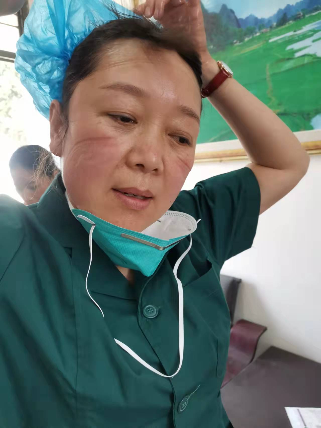10多天來,雷雪玲總是早出晚歸,穿著厚厚的隔離服,戴著橡膠手套、防護(hù)眼鏡、帽子和面罩,套著過膝的腳套,連續(xù)工作數(shù)十個小時,期間不能上衛(wèi)生間、不能喝水,甚至不能擦擦汗。天氣寒冷,但是一天工作下來,她總是被厚厚的防護(hù)服悶得汗流浹背,手被泡得發(fā)白,臉上也被口罩勒出層層痕跡,加上本來就患有心臟病的她,經(jīng)常會體力不支,但是她卻不顧病痛的折磨,從未請過一次假,每天都堅持帶病入戶采樣。晚上工作結(jié)束,她的雙腿已經(jīng)麻木,也顧不上休息片刻又匆忙準(zhǔn)備第二天檢測需要的試劑,有時為了方便早上出發(fā),她直接和衣而臥。她的這種不怕苦,不怕累,舍小家為大家的犧牲精神深深感動著每一位醫(yī)護(hù)人員!