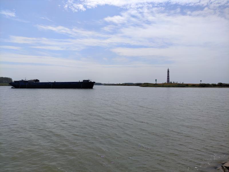 9月21日19時(shí)許,豫貨出海、“周”向世界——周口六條貨運(yùn)集裝箱航線大型異地采訪活動(dòng)采訪組一行在堤岸下的農(nóng)田中穿行,終于到達(dá)沫河口。昏暗的夜色下,采訪組成員望著寬闊的河道,隱隱如山的貨輪伴著引擎的轟鳴聲緩緩駛過(guò),僅有的點(diǎn)點(diǎn)燈光來(lái)自對(duì)岸海事部門(mén)的檢查站。沫河口岸邊,一些房屋久棄不用,黑洞洞的窗口像一張張大嘴,仿佛在訴說(shuō)著村莊久遠(yuǎn)的歷史。