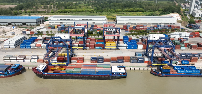 繁忙的淮安港。在自動化集裝箱碼頭,貨船頻繁進出,集裝箱不斷被起重機吊起、裝運,繁榮忙碌而又秩序井然。據(jù)了解,目前淮安全市碼頭岸線28公里,港區(qū)7個、碼頭116座、泊位389個,其中千噸以上泊位92個,年設計吞吐能力1.1億噸,其中集裝箱碼頭吞吐能力50萬標箱。2021年,淮安被交通運輸部確定為“全國內(nèi)河主要港口”。運行內(nèi)河集裝箱航線14條,上游覆蓋河南周口、山東、湖北、安徽等地,下游通達銜接江蘇沿江沿海、上海等地。2021年完成集裝箱吞吐量31.07萬標箱。