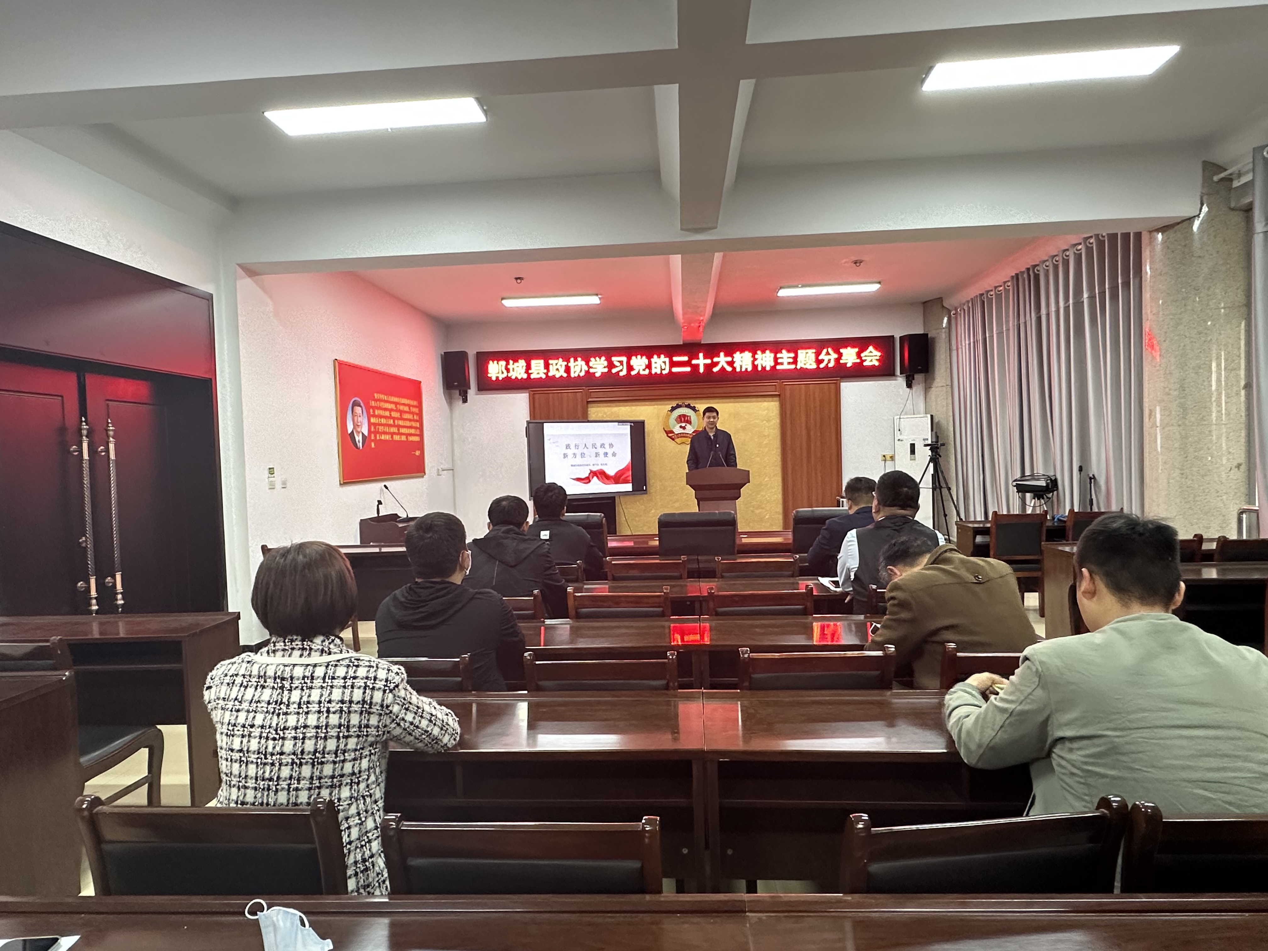 為深入學(xué)習(xí)宣傳貫徹黨的二十大精神,落實(shí)中央和省委、市委、縣委、縣政協(xié)工作會議精神,持續(xù)深化“委員讀書學(xué)習(xí)”活動,提升政協(xié)履職實(shí)效,激發(fā)干事活力,11月17日,鄲城縣政協(xié)舉辦“學(xué)精神踐行動 閱讀向未來”學(xué)習(xí)黨的二十大精神主題分享會??h政協(xié)秘書長朱東風(fēng)及全體機(jī)關(guān)人員參加活動。
