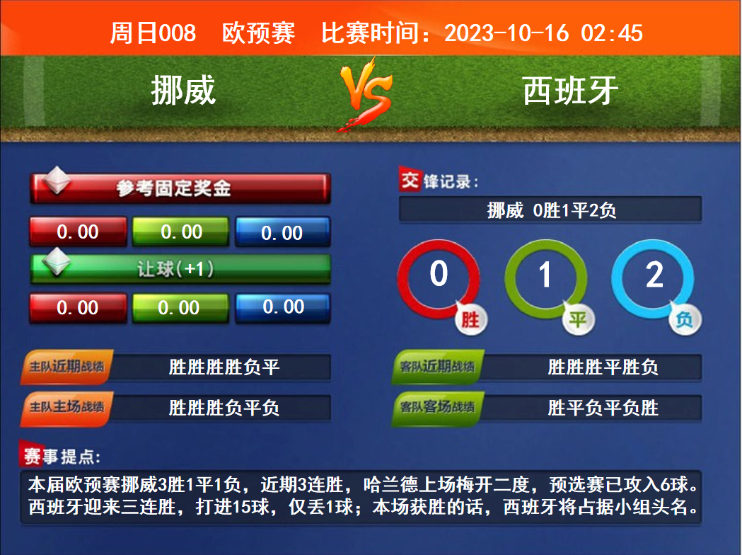周日008 歐預(yù)賽 挪威VS西班牙