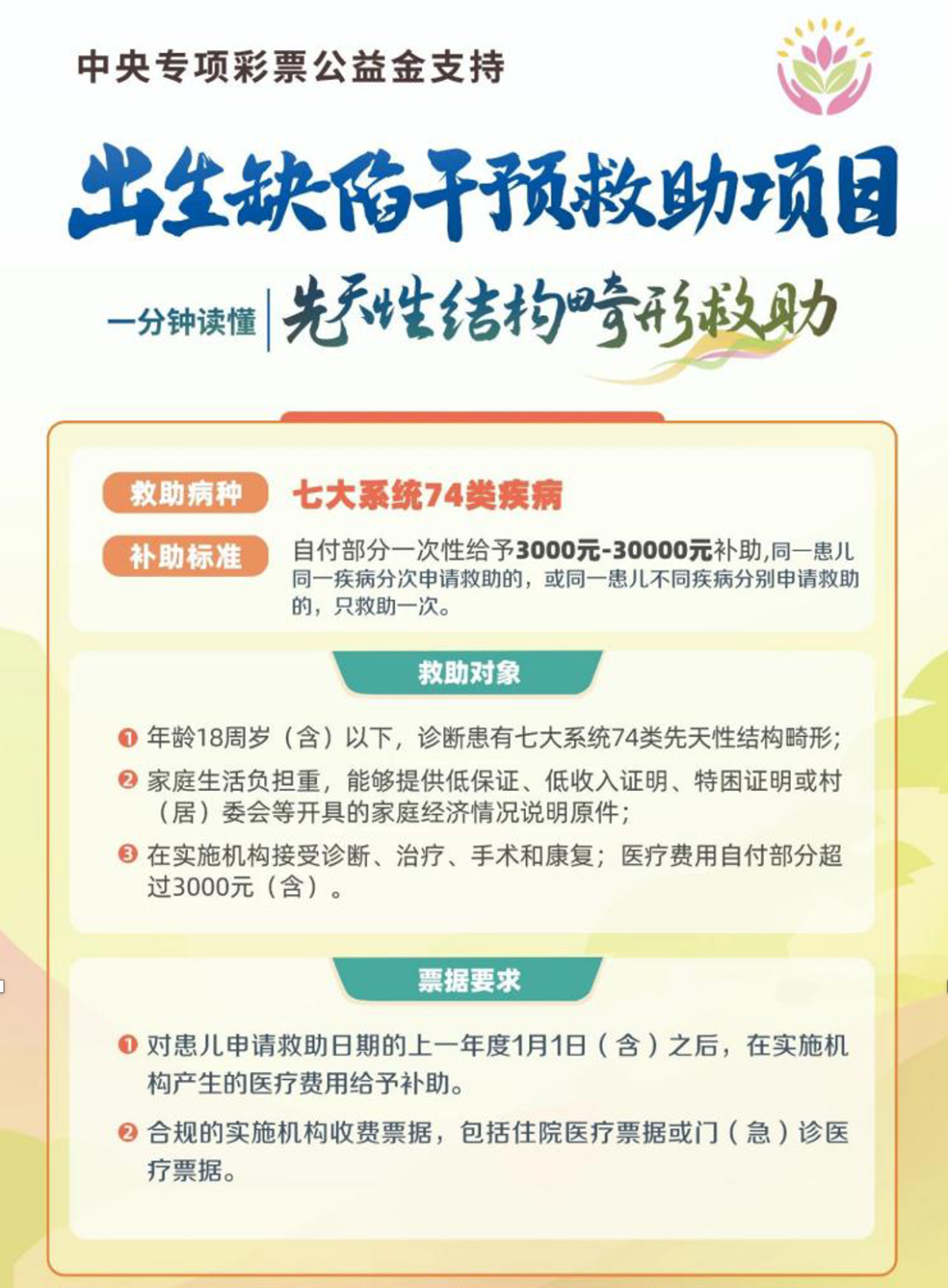 【公益金】中央專項彩票公益金救助出生缺陷患兒