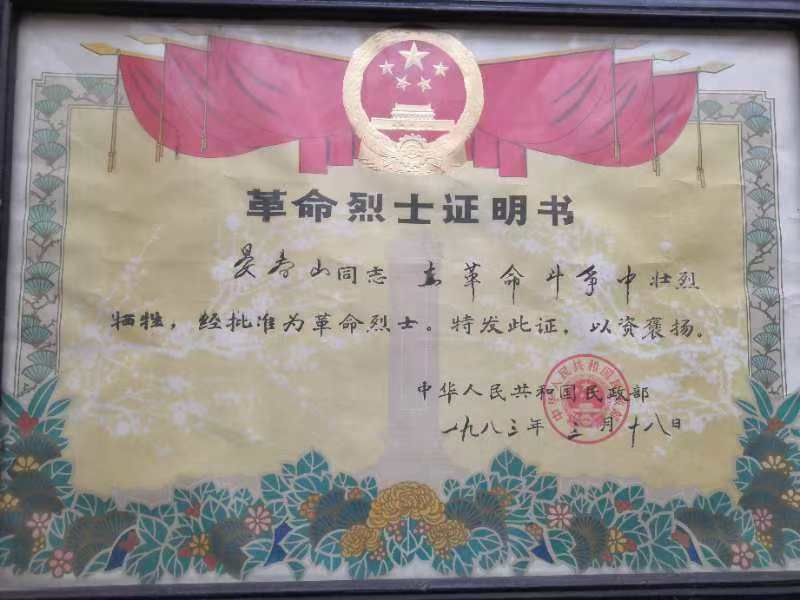 黃德耀的小爺爺黃成香于1935年3月在哥哥黃本富犧牲后的第2個(gè)月參加紅軍。1940年,黃成香在安徽省定遠(yuǎn)縣對(duì)日軍戰(zhàn)斗中英勇?tīng)奚菬o(wú)存,年僅17歲。