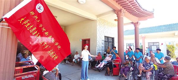8月16日,鄭州大學(xué)大學(xué)生(左一)為太康縣高賢鄉(xiāng)汪莊村醫(yī)養(yǎng)院的老人們演唱歌曲。當(dāng)日,由鄭州大學(xué)河南音樂學(xué)院、哲學(xué)學(xué)院大學(xué)生王子奇、王子祎、邵彤組成的“三下鄉(xiāng)”服務(wù)小分隊(duì)走進(jìn)該醫(yī)養(yǎng)院,開展“情暖夕陽(yáng)·愛駐心間”社會(huì)實(shí)踐活動(dòng),為生活在這里的老人們打掃衛(wèi)生、表演節(jié)目,醫(yī)養(yǎng)院里充滿了其樂融融的氛圍。