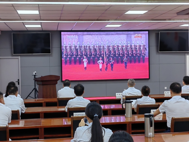 收看過(guò)程中,大家心情澎湃,感慨萬(wàn)千?,F(xiàn)場(chǎng)氣氛莊重而熱烈,大家全神貫注,聆聽(tīng)習(xí)近平總書(shū)記重要講話,滿(mǎn)懷激動(dòng)與自豪的觀看閱兵儀式的全過(guò)程。當(dāng)威武雄壯的三軍儀仗隊(duì)邁著鏗鏘有力的步伐率先通過(guò)天安門(mén)廣場(chǎng)時(shí),當(dāng)一個(gè)個(gè)裝備方隊(duì)展示著彰顯國(guó)家實(shí)力的現(xiàn)代化尖端武器時(shí),當(dāng)戰(zhàn)機(jī)梯隊(duì)以恢宏陣勢(shì)呼嘯掠過(guò)蒼穹時(shí),大家內(nèi)心迸發(fā)出由衷的贊嘆,為祖國(guó)日益強(qiáng)盛而自豪。