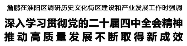本報訊 (記者 李鳳霞 何晴) 10月29日,市長詹鵬到淮陽區(qū)調(diào)研歷史文化街區(qū)建設(shè)和產(chǎn)業(yè)發(fā)展工作,強(qiáng)調(diào)要深入學(xué)習(xí)貫徹黨的二十屆四中全會精神,扎實(shí)推進(jìn)產(chǎn)業(yè)高質(zhì)量發(fā)展,鞏固壯大實(shí)體經(jīng)濟(jì)根基,奮力譜寫中原大地推進(jìn)中國式現(xiàn)代化周口新篇章。張建黨、王文峰參加調(diào)研。